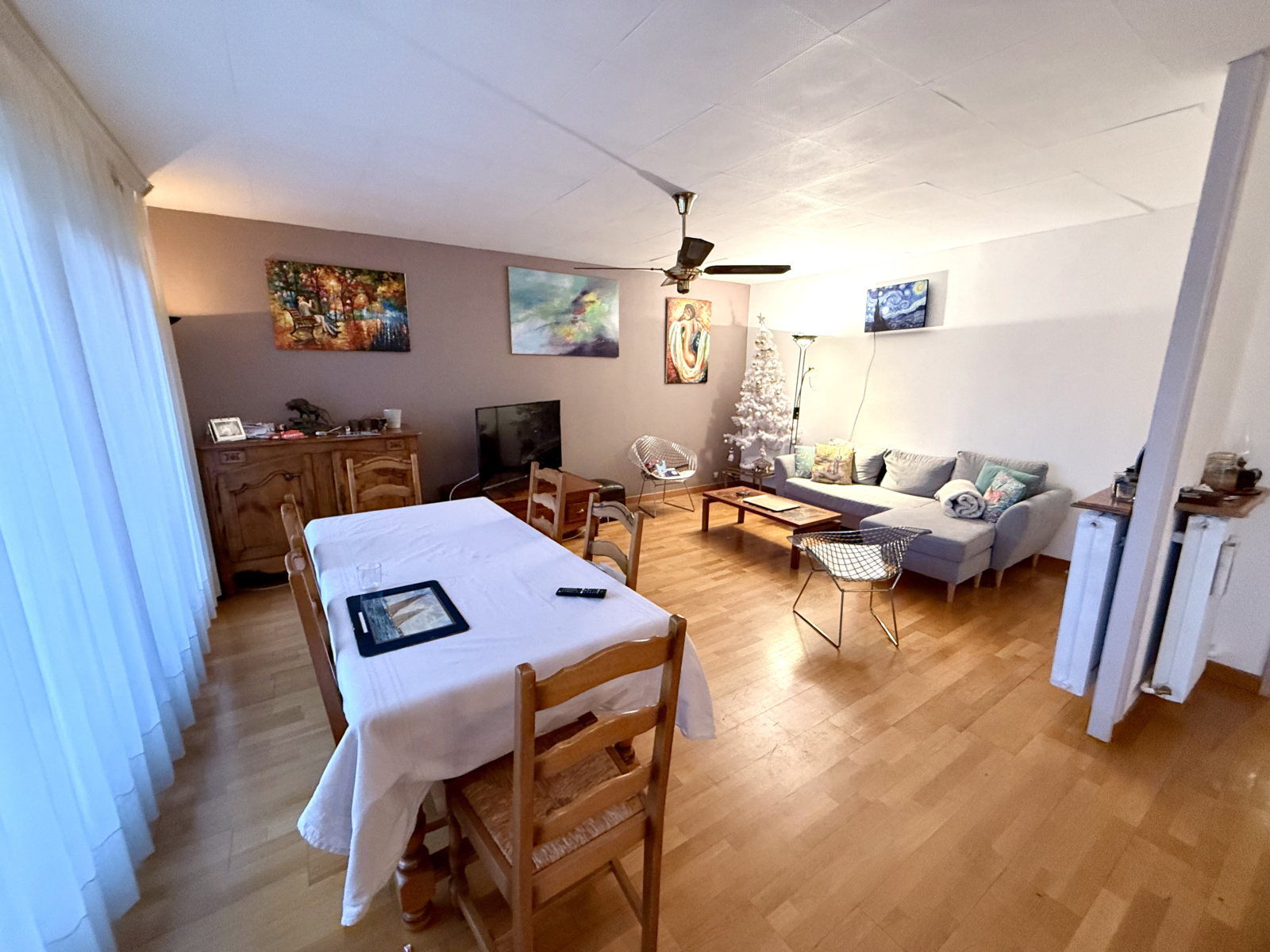 - Un bel espace de vie : salle à manger ouverte sur un salon, idéal pour recevoir.