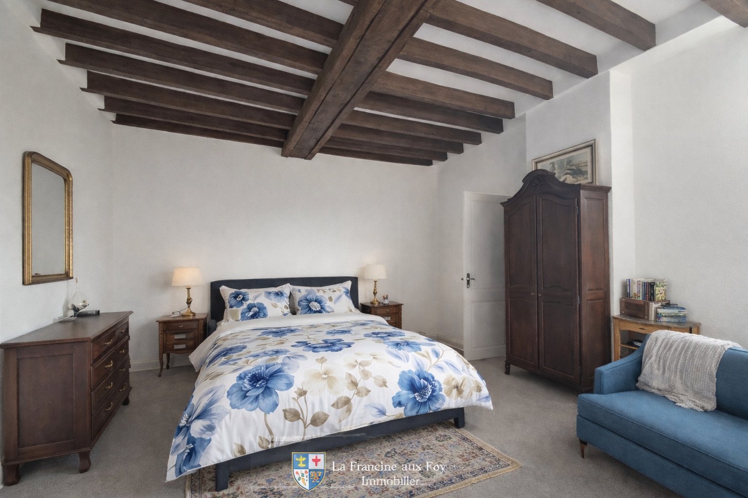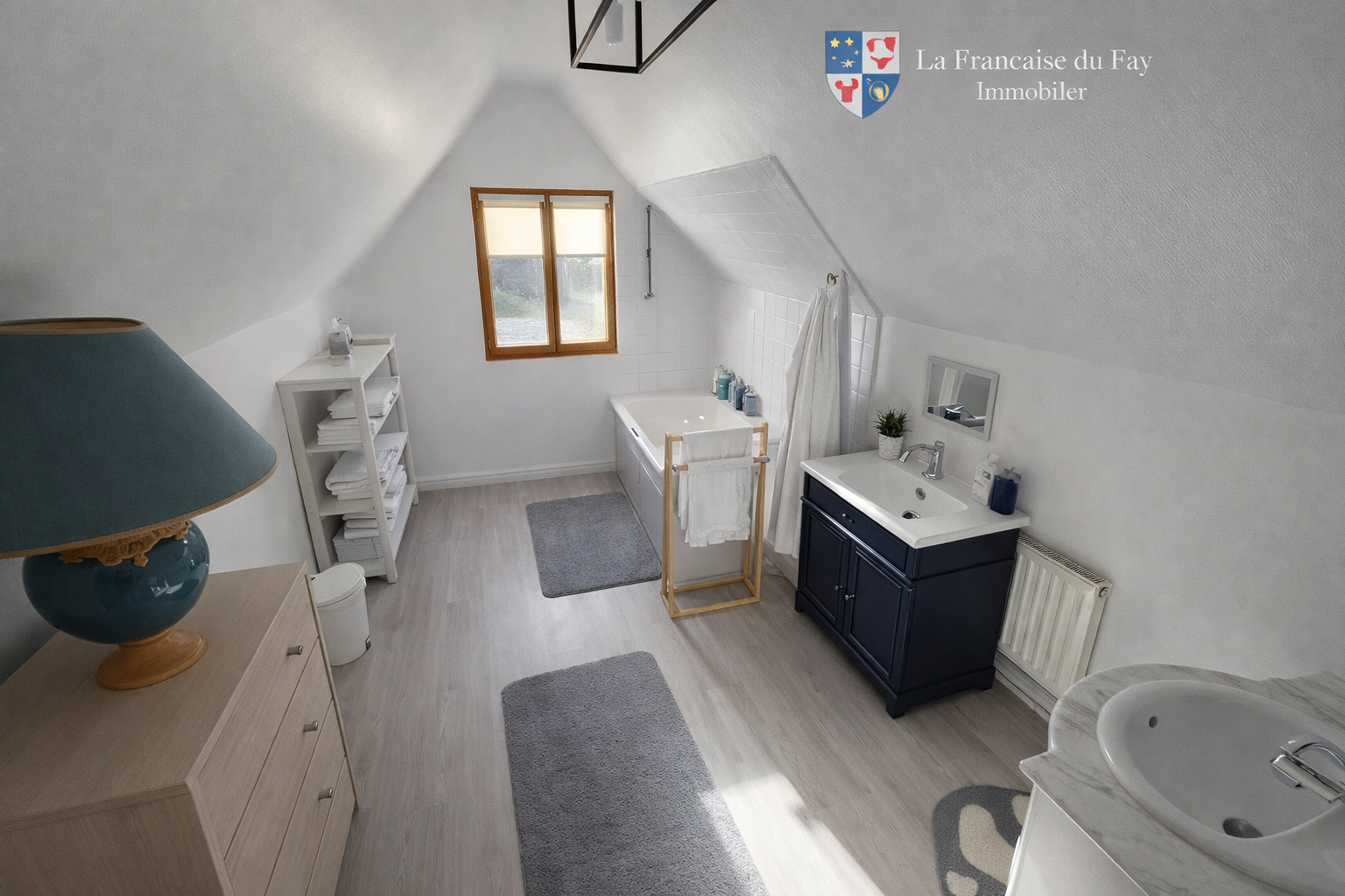- Une grande chambre mansardée avec rangements
