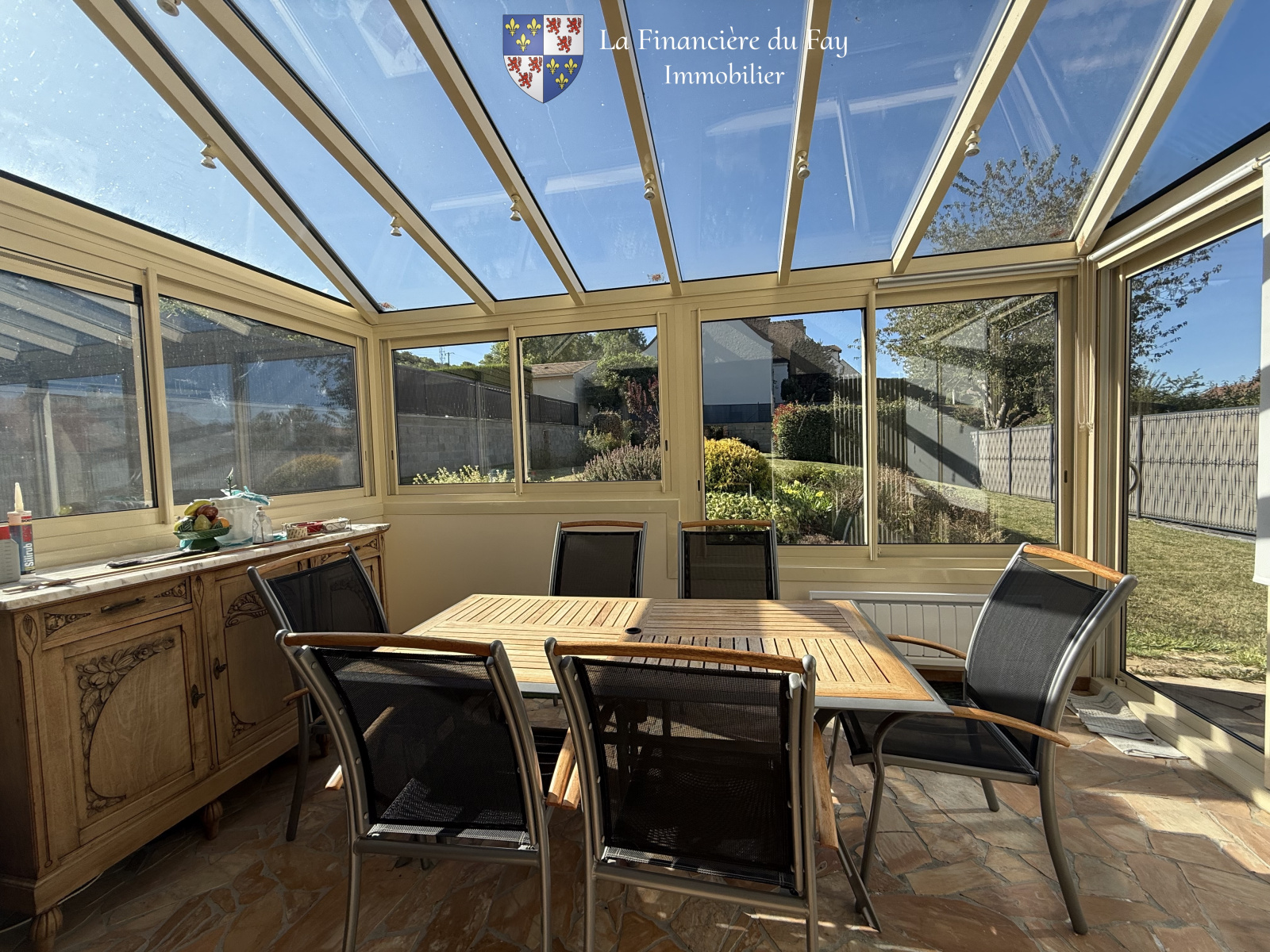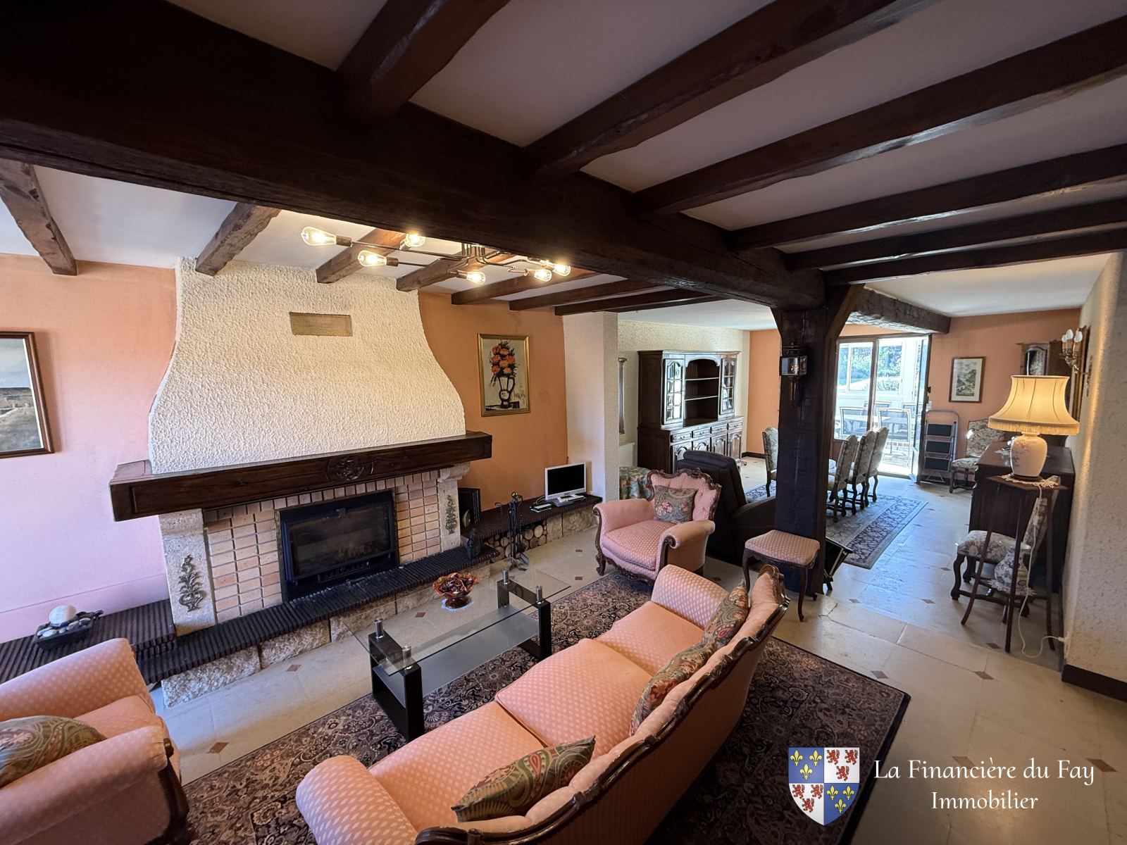 - belle pièce de vie avec cheminée et acès directement sur la véranda