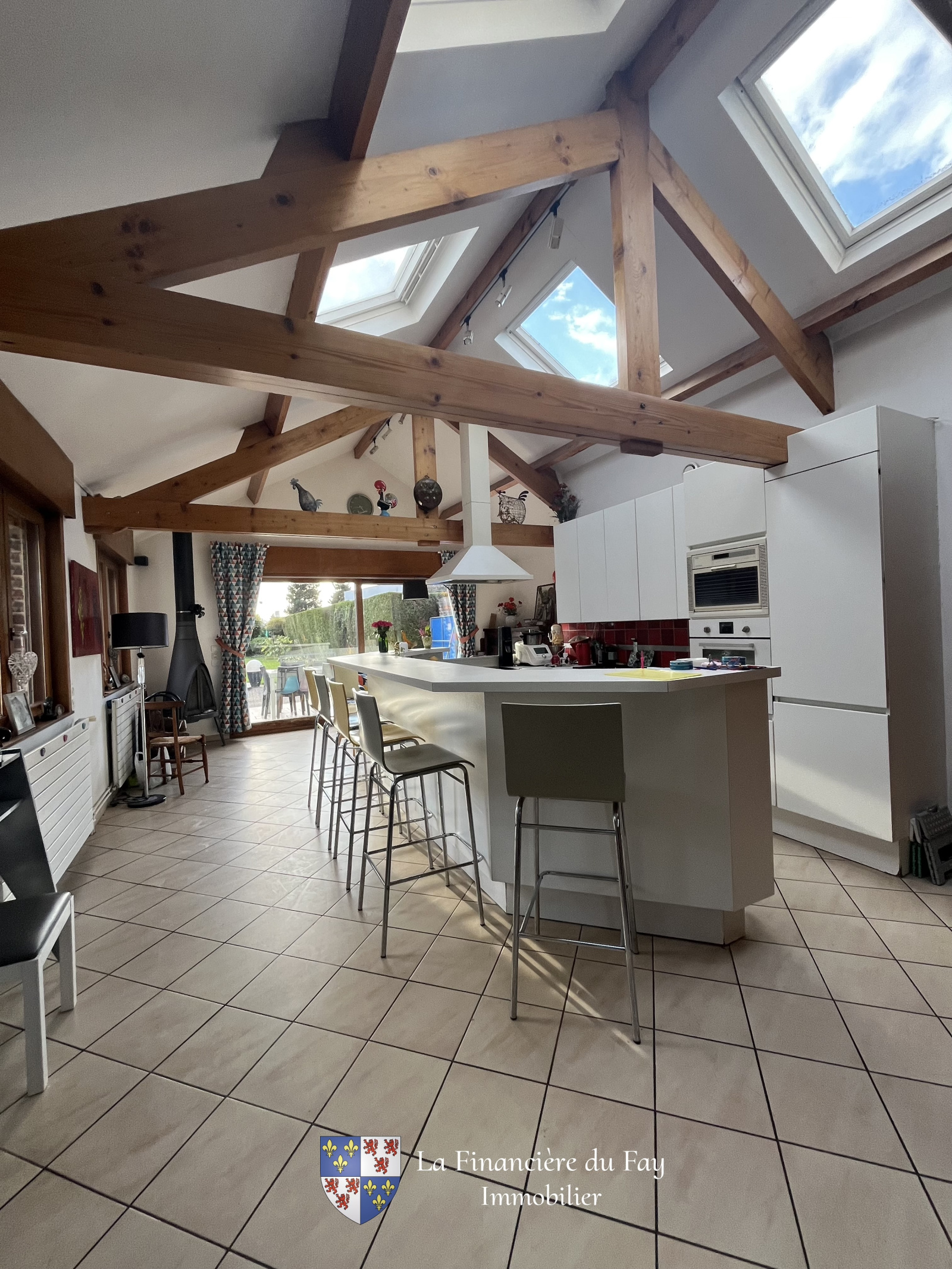 - Rez de chaussée : Une spacieuse cuisine équipée ouverte sur un salon-salle à manger lumineux de 69 m2 offrant un accès direct à la terrasse.